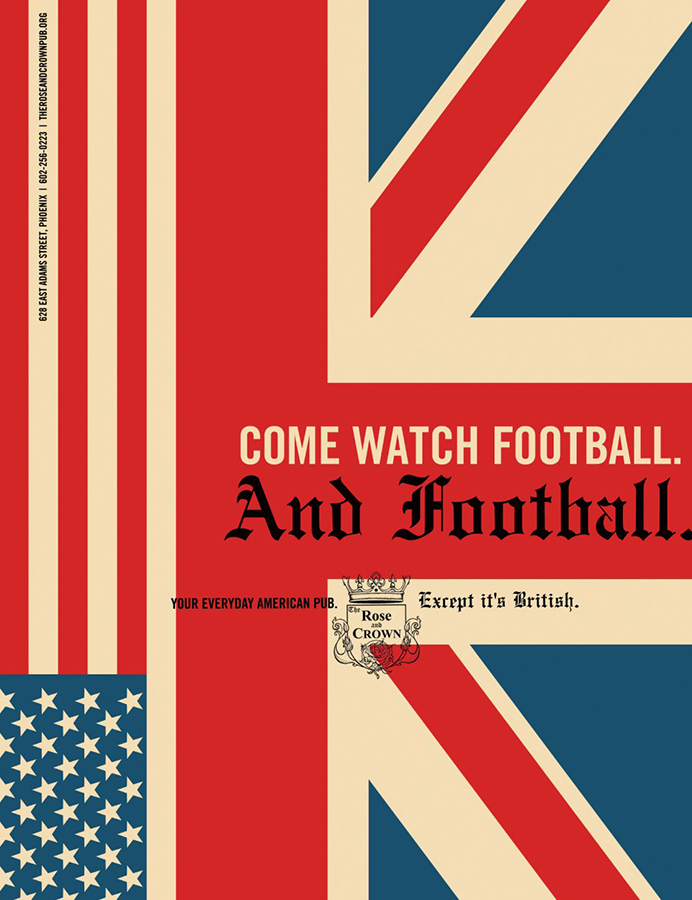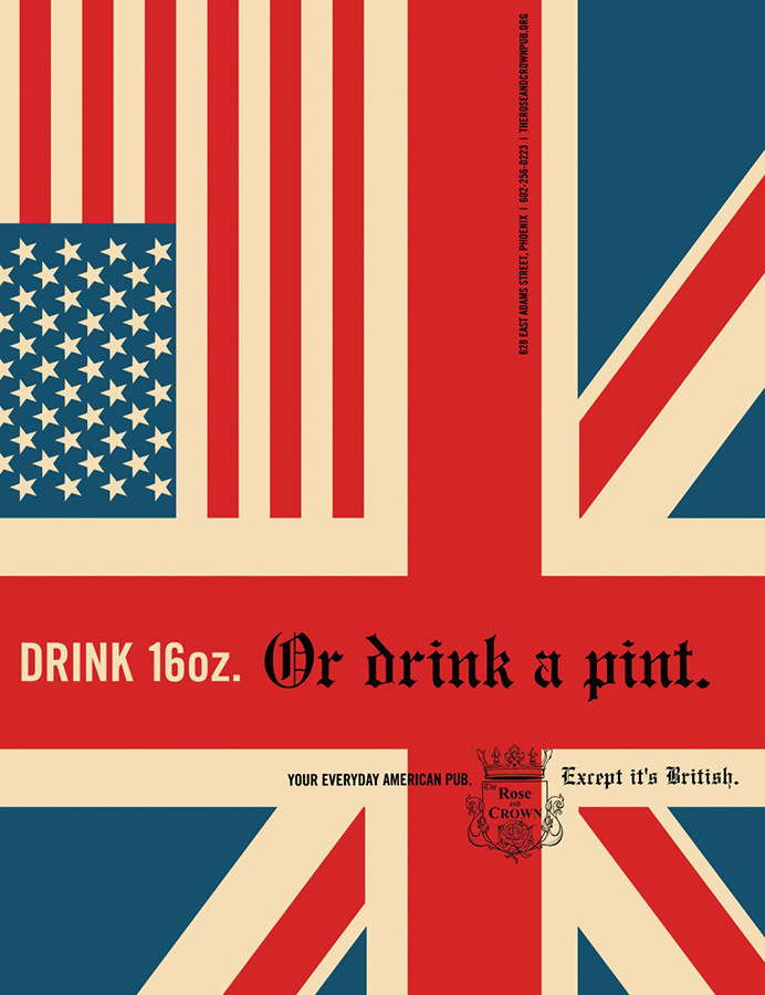 The Rose & Crown is your everyday American pub, just with a splash of British culture. We created this print / OOH campaign to get the word out.